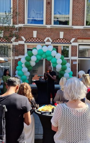 Quiet is een community rijker en dat is in de Scheepersstraat 136 in Den Haag. Den Haag staat in de top 5 van de meest financieel kwetsbare inwoners van Nederland. Wij hebben op 22 juni de feestelijke opening gehad met onze ambassadeur Jandino Asporaat en wethouder Kapteijns die ons pand opende. Ook hebben we veel lawaai gemaakt en tot ons groot genoegen hierdoor contact gelegd met de buurtbewoners. Zij zullen al komende week langskomen voor een kop koffie. Hoe leuk is dat!!?