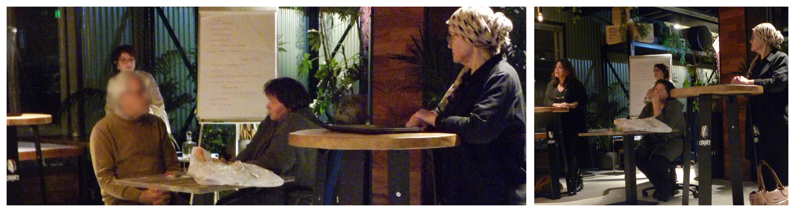 Vanuit de zaal geven mensen tips over hoe het beter kan. Die schrijft Marion allemaal op een grote flap. En of we het anders even voor kunnen doen?